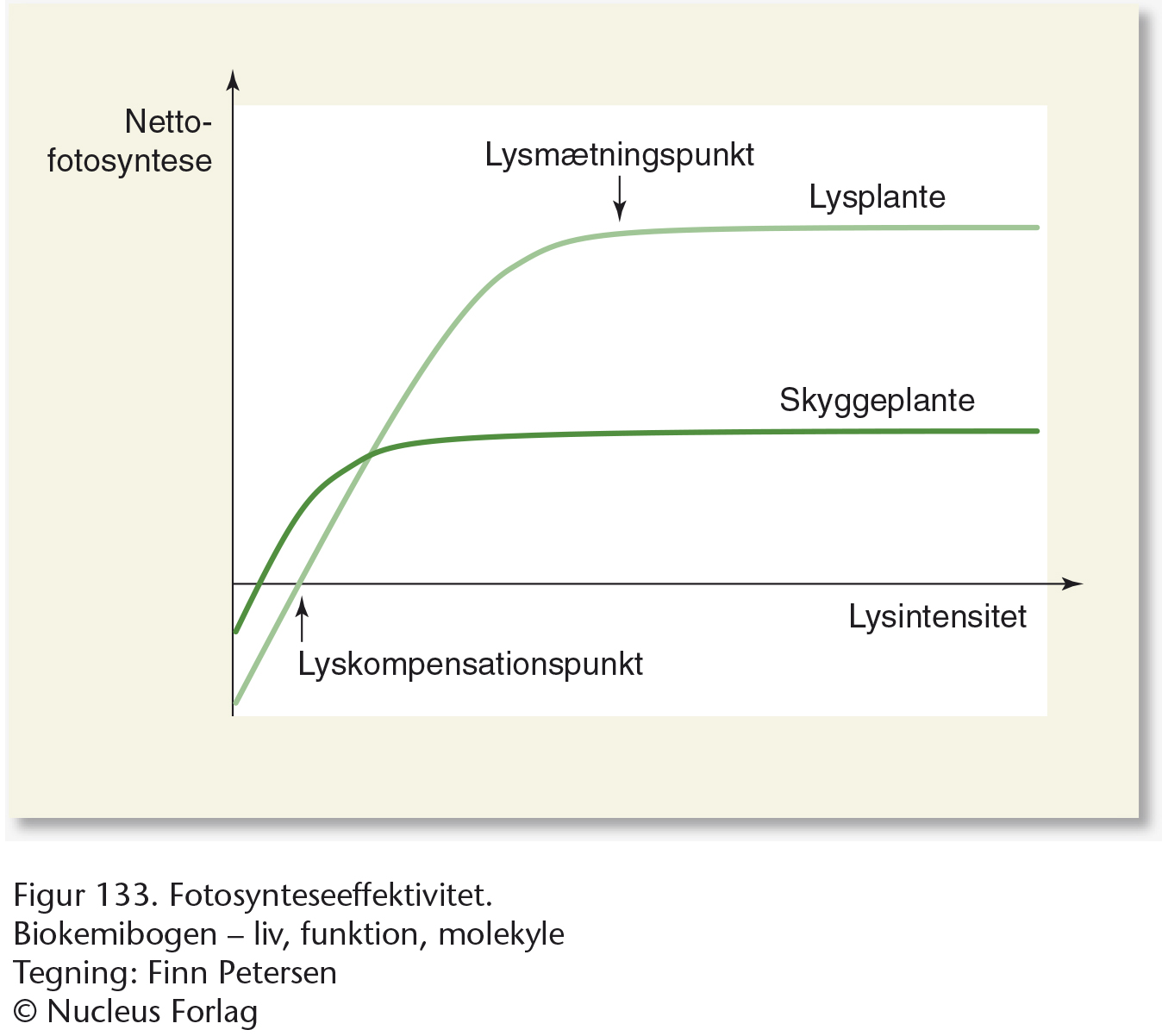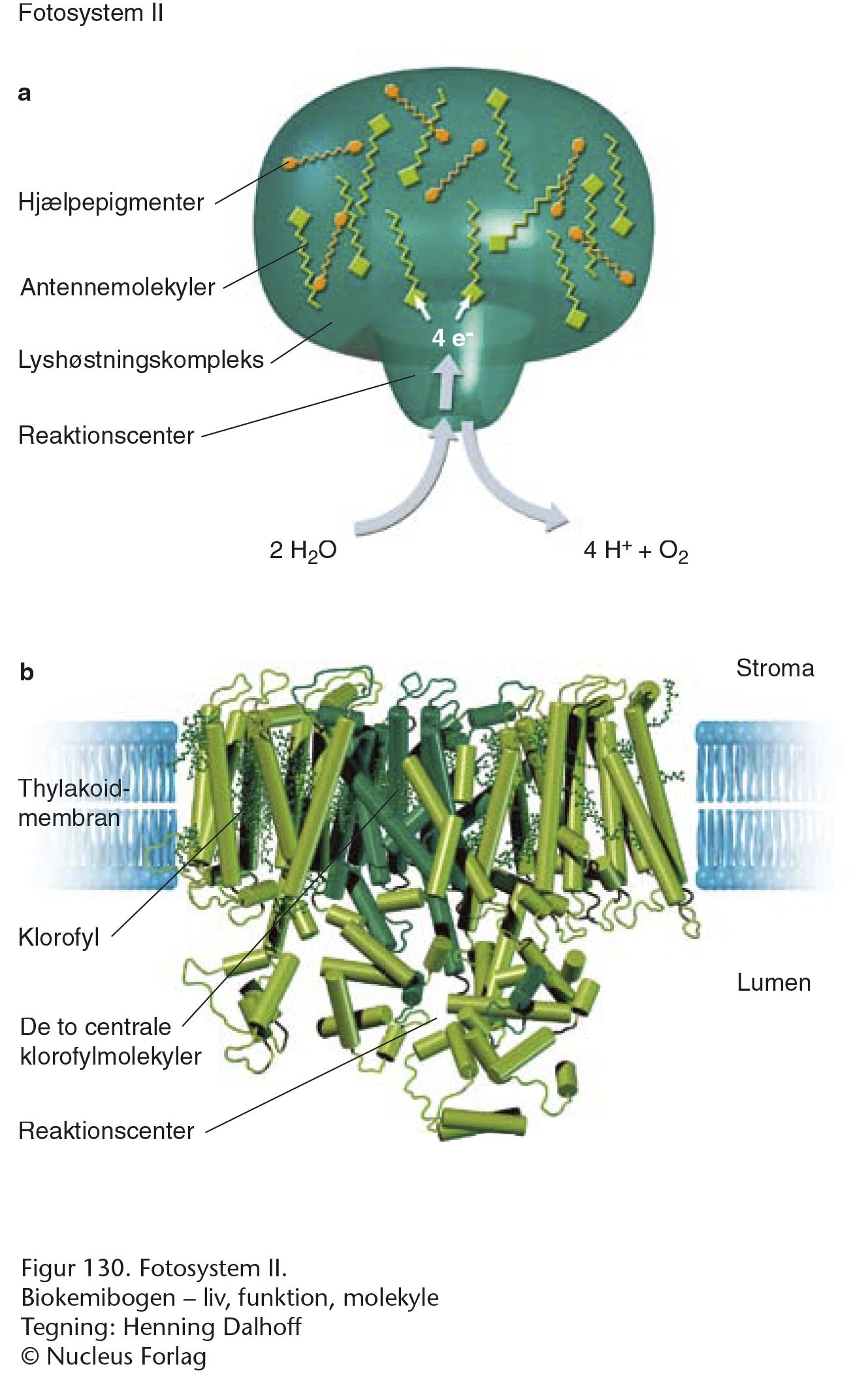 Baggrundsfigurerne for denne animation er Biokemibogens figur 131 og 132. Fra bladet zoomes der ind på kloroplasten hvor fotosyntesen foregår. Vi følger enzymsystemerne i lysprocessen hvor H2O spaltes og O2 frigives som et affaldsstof. Derefter følger vi elektroner og protoner, og undervejs produceres NADPH og ATP til brug i Calvins cyklus.